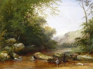 Figures In A Mountainous River Landscape