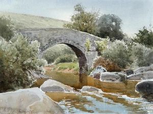 River Landscape With Bridge