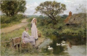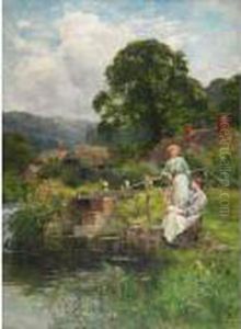 Feeding The Ducks, A Summer Day By The River