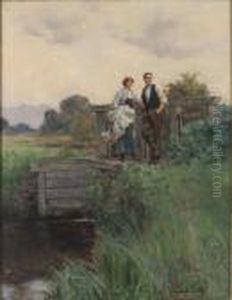 A Girl On A Bridge, A Cottage Beyond