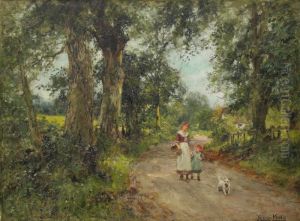 Mother, Child And Terrier On A Lane