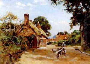 Pigs And Geese In Front Of A Thatched Cottage