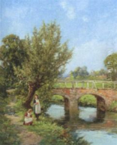 Sommarlandskap Med Kvinnor Vid Bro