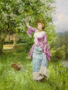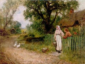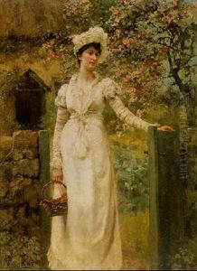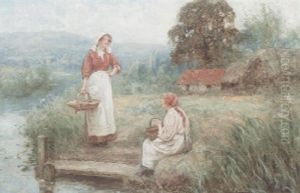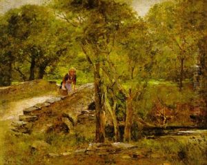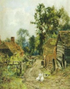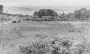 Pastoral Scene With Sheep And Maiden Carrying A Bucket With Church In The Distance