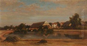 Figures By A Farmhouse In A River Landscape