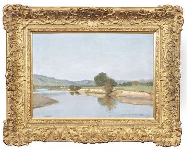 River Landscape, With Clear Blue Sky (possibly France)