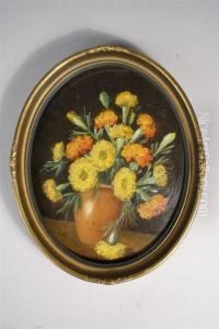 Floral Still Life In A Green Vase