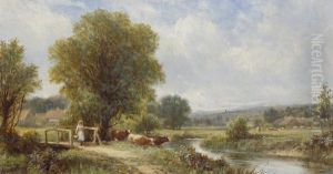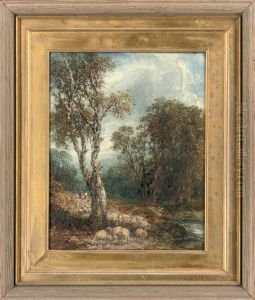 Shepherd With Flock By A Stream