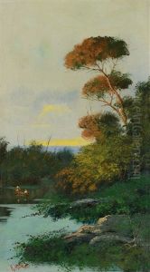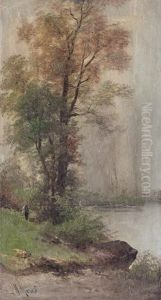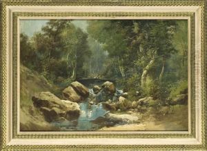 La Promenade Dans Le Bois Et Paysanne Pres D'une Riviere (pair)