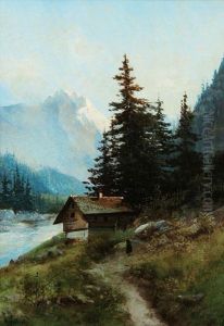 Paesaggio Fluviale Con Caseggiato E Sentiero