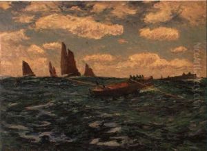Barques Sous Voiles Et Bretonnes Sur La Greve
