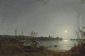 A View Of Greenwich Reach From The Thames By Moonlight, With The Hospital, Enderby House And The Telegraph House