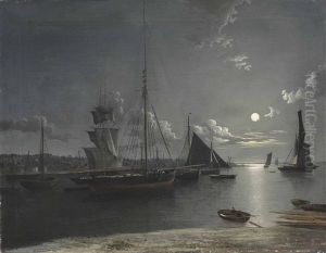 Shipping In The Estuary Under Moonlight
