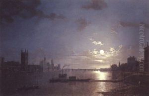 View Of The Thames At Lambeth Palace, By Moonlight