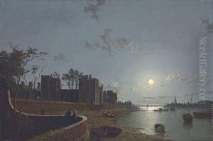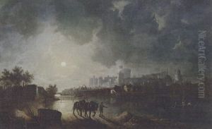 A View Of A Castle On The River, Bymoonlight