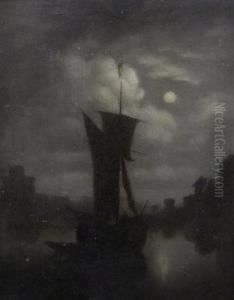 Fishing And Other Vessels On A Moonlit Estuary