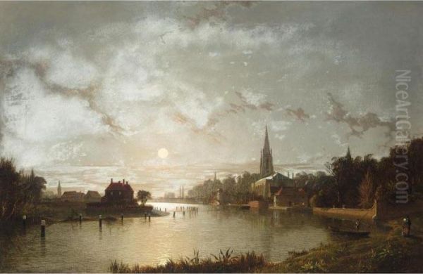 View Of Marlow From The Thames By Moonlight
