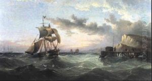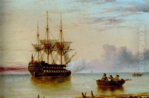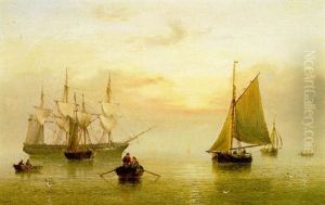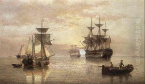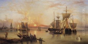 An Anchored Merchantman And Traders Off The North East Coast At Dusk