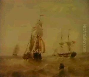 Men Of War And Other Shipping In A Calm Sea At Sunset Off The Texel