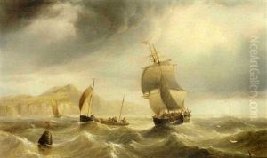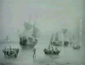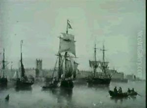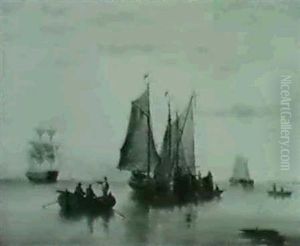 Fishing Vessels And An Anchored Barque Off A Dutch Port