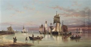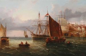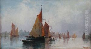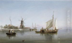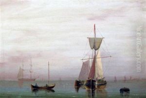 A Schooner And Fishing Vessels In A Calm; And Dutch Fishing Barges Running Into Port