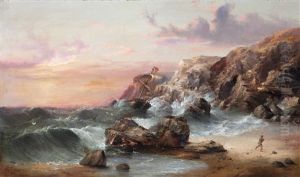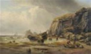 Coastal Scene With Figures On A Beach