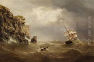 A Shipwreck Off A Rocky Coast