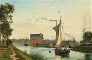 A Dutch Brig Running Out Of Harbour Amidst Other Traffic Atdusk