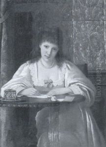 A Boy Writing A Letter By Candlelight