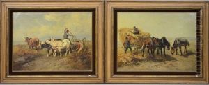 Deux Anes A La Peche & Vaches Et Jeune Femme (2 Works)