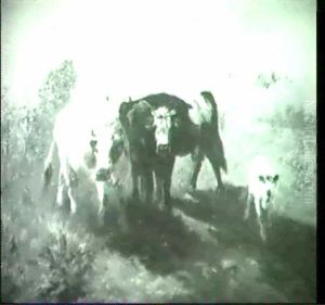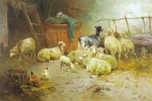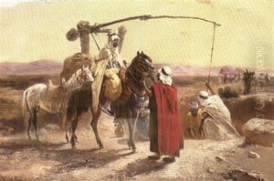 Schaferin Mit Herde Im Gesprach Mit Einem Reiter