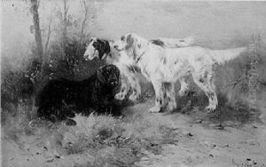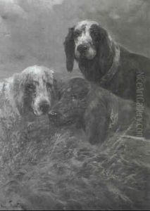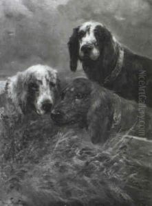 Drei Jagdhunde, Deren Kopfe Aus Dem Gras Hervorschauen