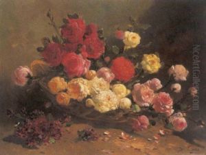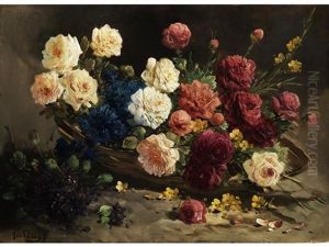 Still Life With Flowers In A Wicker Basket