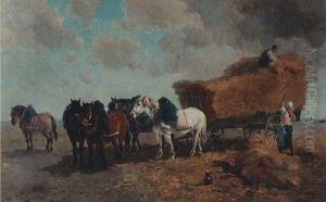 Vierspanniges Pferdefuhrwerk In Herbstlicher Landschaft
