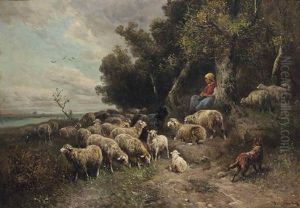 A Pastoral Scene Of A Herder And His Sheep In A Meadow