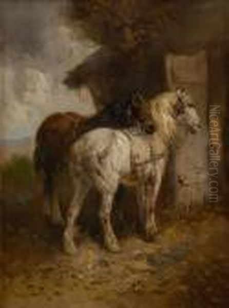 Deux Chevaux Devant L'ecurie Oil Painting by Henry Schouten