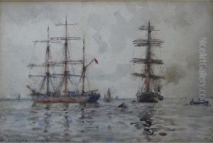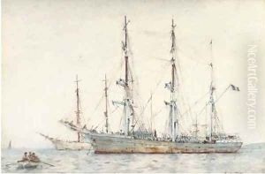 Windjammer In Falmouth Roads; Boats On A Calm Sea