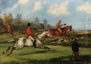 A Whipper-In and a Couple of Hounds Running Hard in Open Country