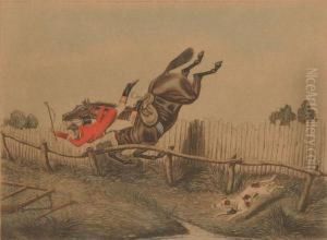 A Steeple Chase, With Emulation Fired They Strain To Lead The Field, Top The Barr D Gate
