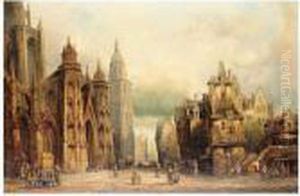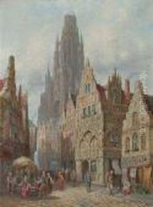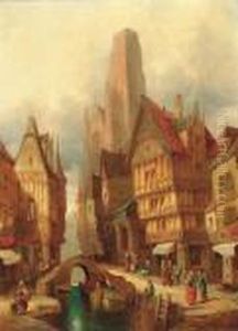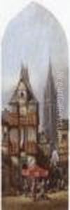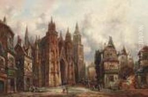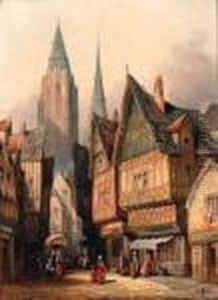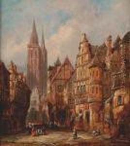 A Continental Townscape With Figures