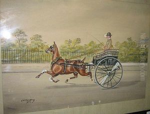 British Gentlemen Driving A Gig Pulled By A Dapple Grey Pony