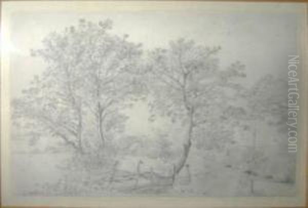 Study Of Trees And Cottage Beyond