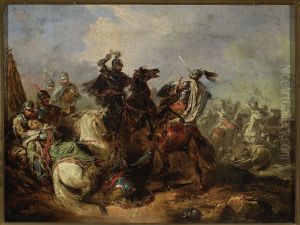 Bring the timeless beauty of Henryk Pillati's Berittene Krimtartaren Beim Angriff into your home with a handmade oil painting reproduction. Carefully recreated on canvas by skilled artists using traditional techniques, this piece captures the delicate brushwork, subtle light, and vibrant color of the original masterpiece. With museum-level quality and rich texture, it brings elegance and artistic depth to any space. Enjoy free shipping and make this masterpiece a part of your personal collection.