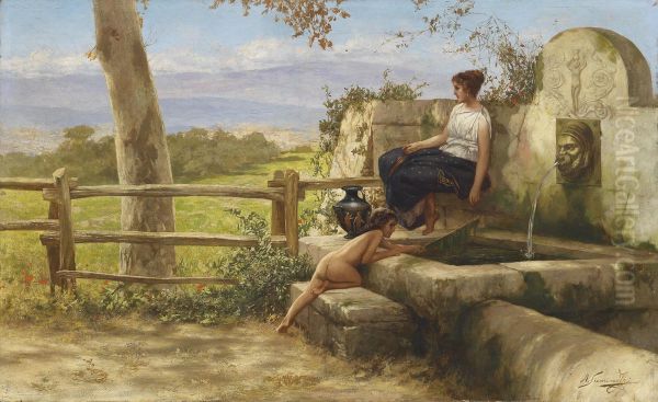 Bring the timeless beauty of Henryk Siemiradzki's At The Fountain into your home with a handmade oil painting reproduction. Carefully recreated on canvas by skilled artists using traditional techniques, this piece captures the delicate brushwork, subtle light, and vibrant color of the original masterpiece. With museum-level quality and rich texture, it brings elegance and artistic depth to any space. Enjoy free shipping and make this masterpiece a part of your personal collection.