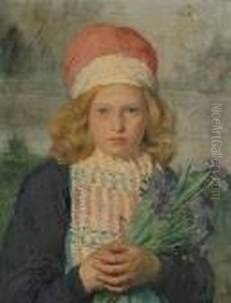 A Portrait, Bust Length, Of A Young Girl With Irises