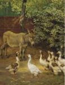 Geese And Donkeys On A Country Road; Geese And A Donkey Under A Tree