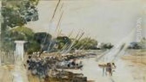 Boatman On A Lake With Traces Of A Monogram