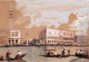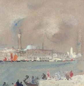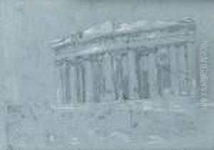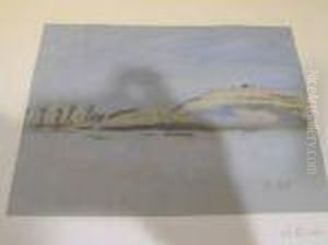 Brabazon- Beached Vessel By A Castle; Black And Coloured Chalk, Inscribed, 26.5x43cm