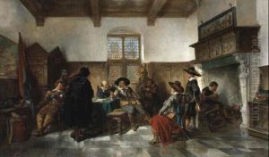 Landsknechte Und Magd In Der Schenke Am Kamin