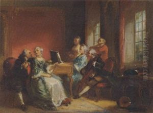 Ein Kavalier Macht Zwei Schonen Rokokodamen Seine Aufwartung